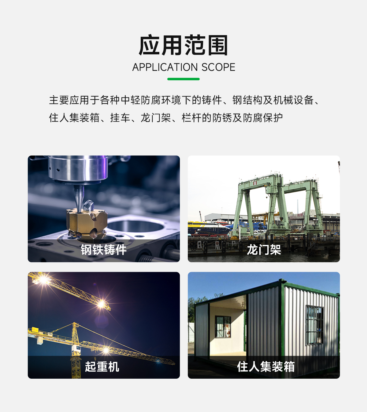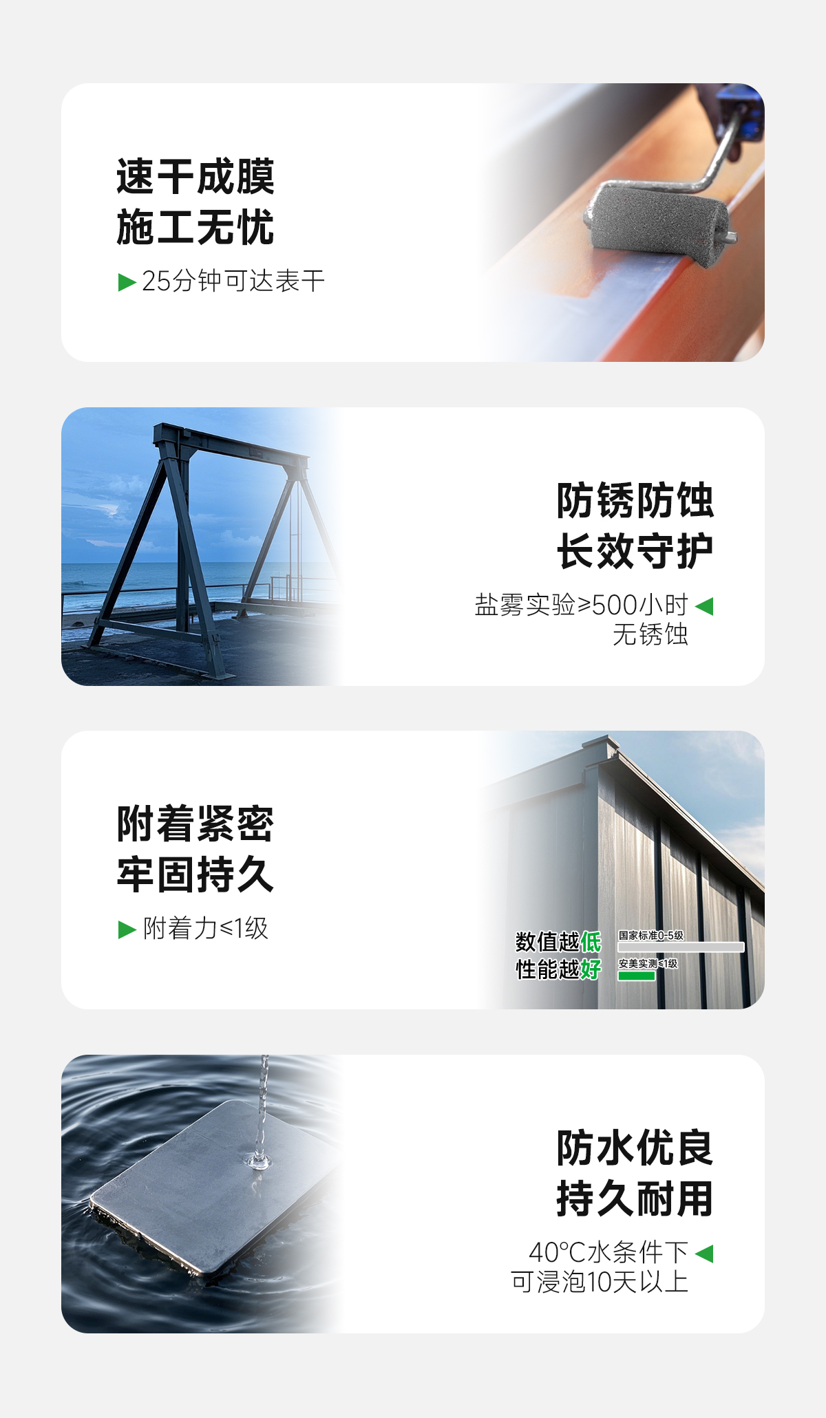 3、防闪锈、防返锈、耐盐雾、防腐效果出色。
