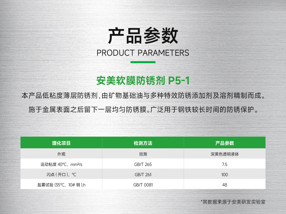 关于安美软膜防锈剂P5-1的其它具体指标参数,请移步”安美商城”下载MSDS和TDS报告浏览,或直接防锈油生产厂家-安美集团客服热线400-7788-123/客服微信18576991625查询索取。