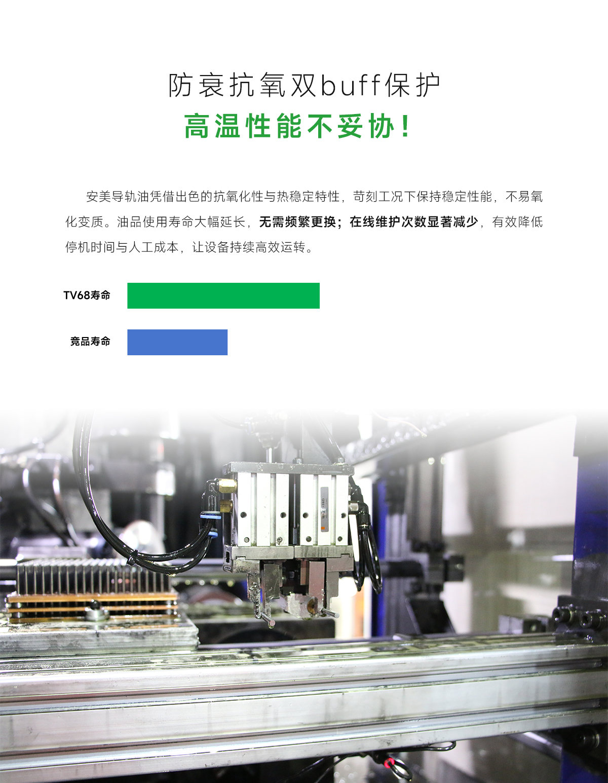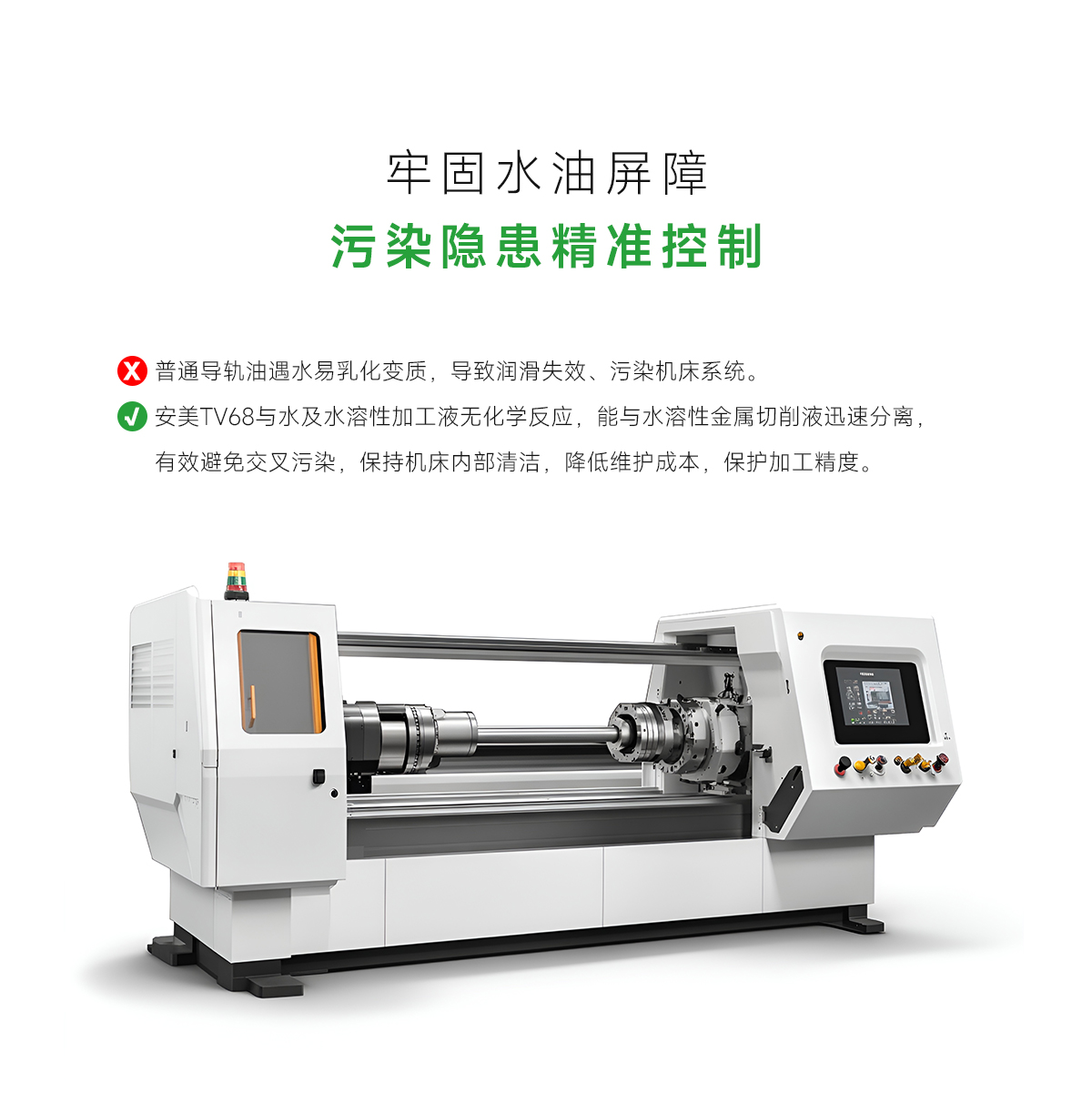 安美精密导轨油TV68满足当代高效率机床导轨润滑的全方位需求,改变运行中的导轨与滑槽之间的接触状态,提供有效润滑、管控摩擦、防止爬行、抑制腐蚀,与冷却系统中的水溶液不兼容,对过滤系统的通透性无影响。可为各类钢-钢导轨系统、钢-聚合物导轨系统提供优越的润滑保护,减少粘滑运动与抖动,既提高机器生产率和精确度,又帮助延长机床寿命和减少维护保养。