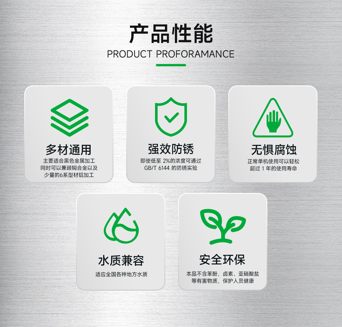 3、安全环保:本品不含苯酚,卤素、亚硝酸盐等有害物质,保护人员健康。