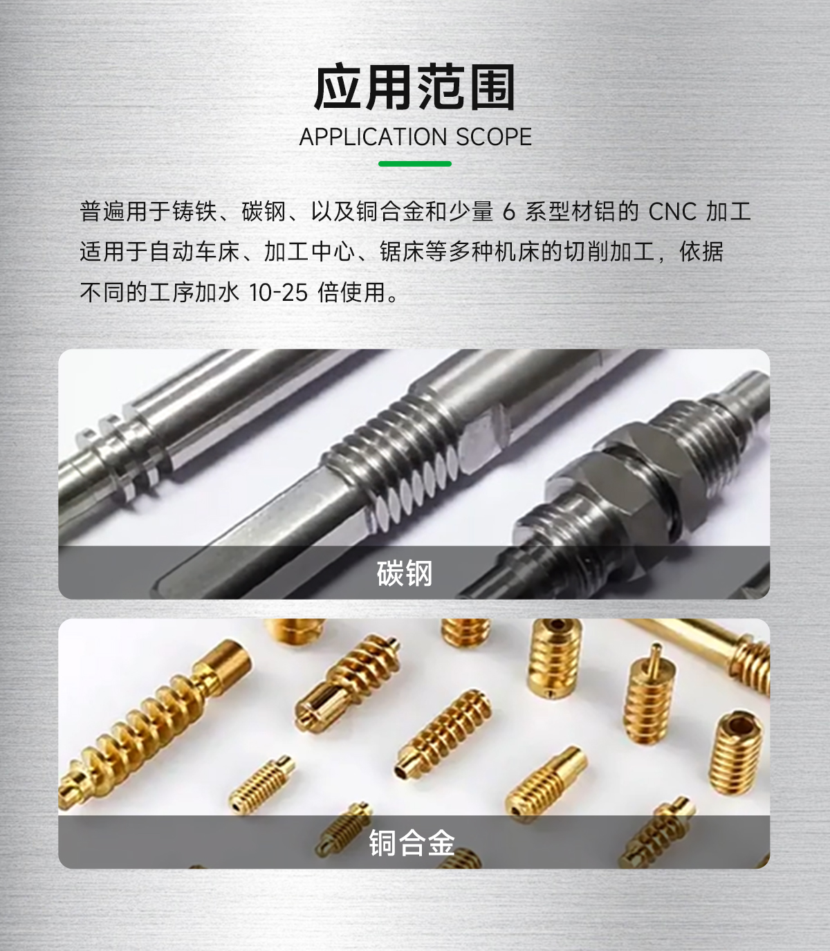 1、艾护半合成加工冷却液AF4500普遍用于铸铁、碳钢、以及铜合金和少量 6 系型材铝的 CNC 加工。