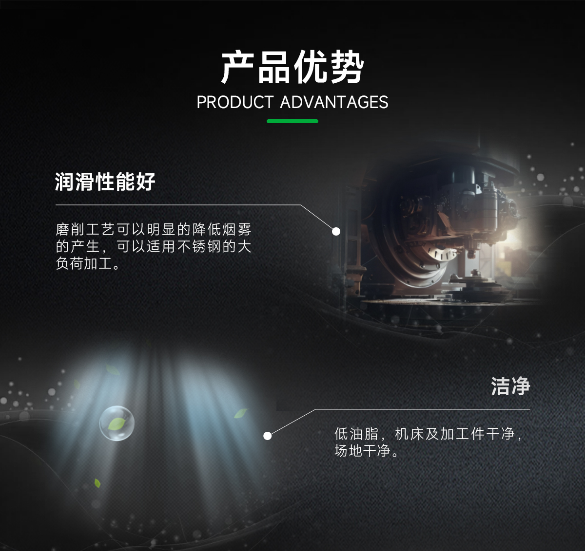 1、润滑性能好,磨削工艺可以明显的降低烟雾的产生,可以适用不锈钢的大负荷加工。