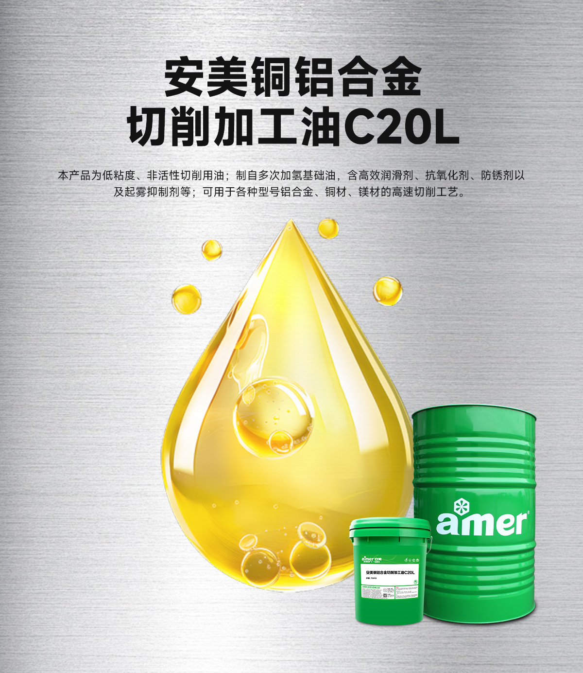 1、安美铜铝合金切削加工油C20L适用于铜、铝、镁合金等多种材质的加工;
