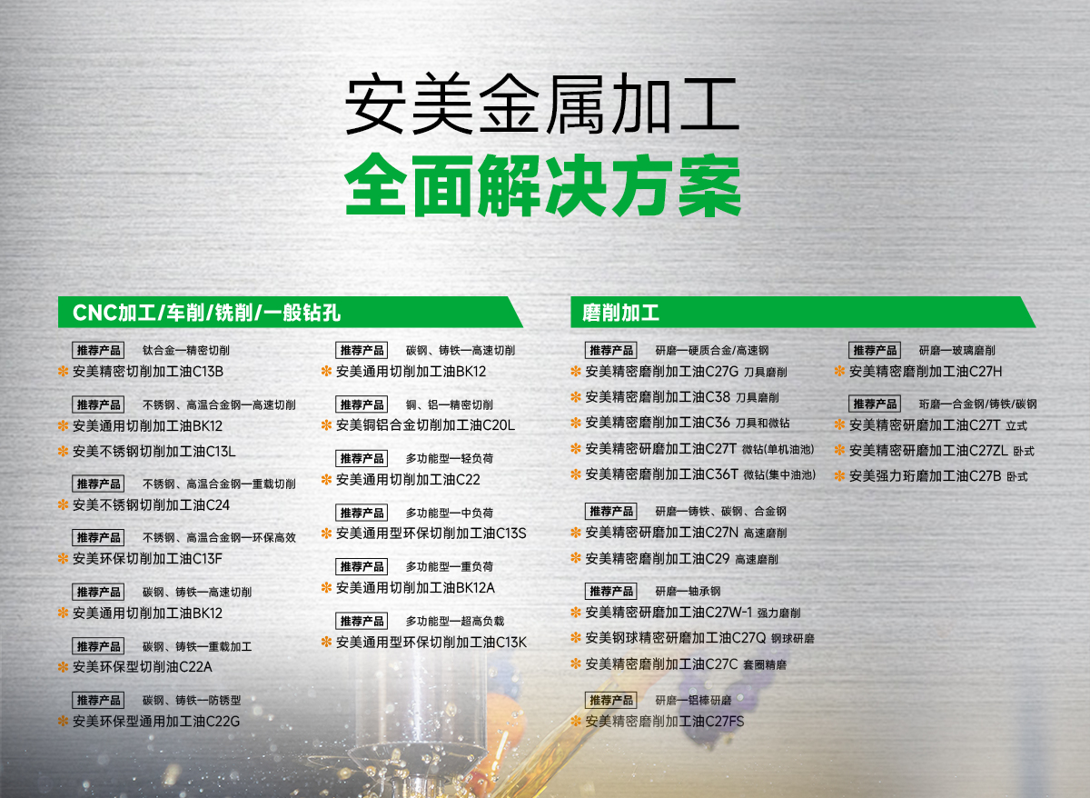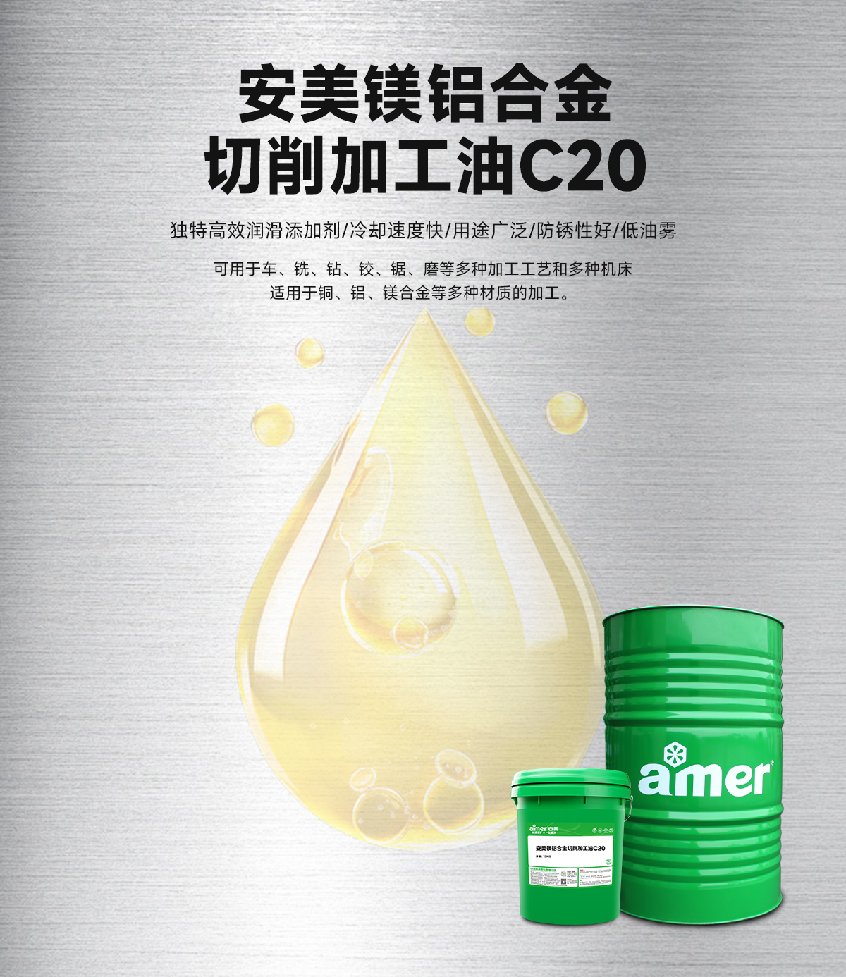 1、安美镁铝合金切削加工油C20适用于铜、铝、镁合金等多种材质的加工;