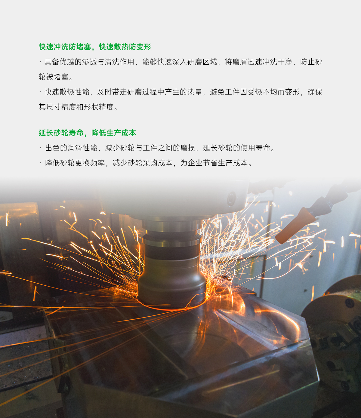 2、优越的渗透与清洗作用,快速冲洗磨屑,防止砂轮被堵塞;