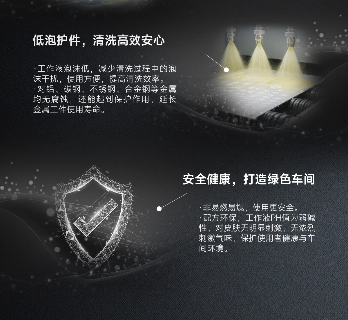 2、低泡:本产品工作液泡沫极低,使用方便。