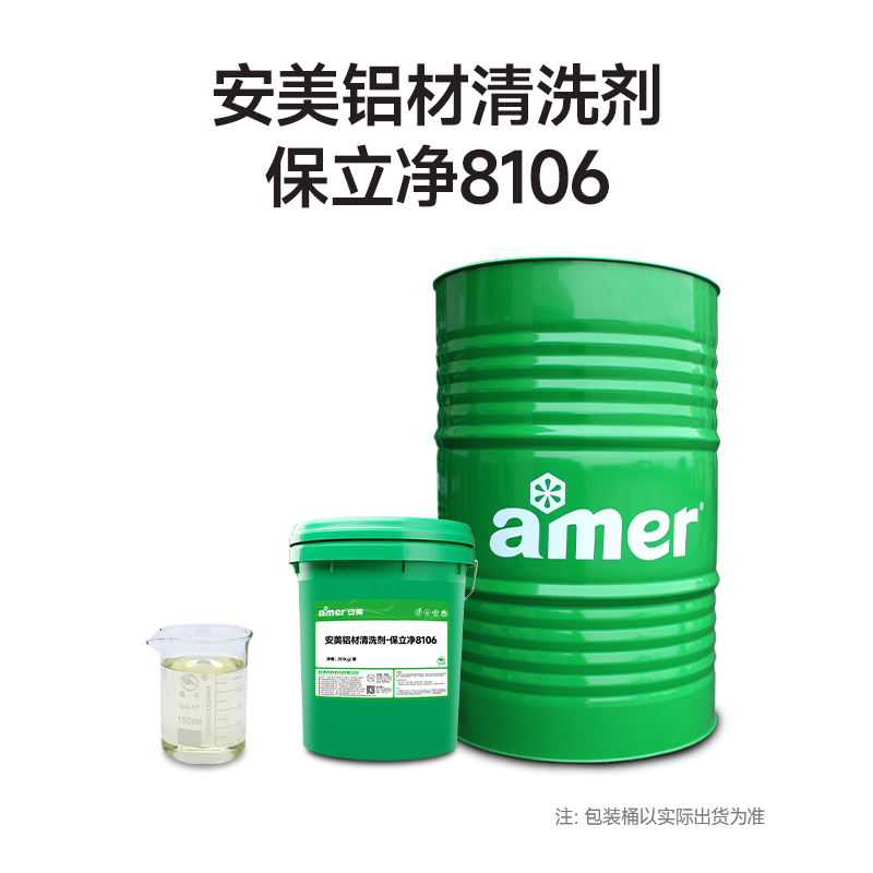 安美铝材清洗剂-保立净8106是由多种成分复配而成。含有剥离剂,渗透剂,缓蚀剂,活性剂等。不含酸性物质。能安全,快速的去除表面氧化层和污垢。使其表面清洁,光亮。