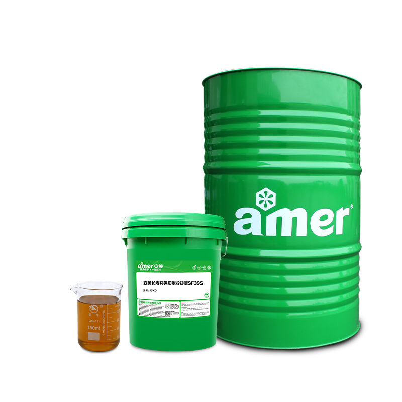 安美长寿环保切削冷却液 SF39S本产品为高润滑,生物性能稳定的水溶性半合成磨削、切削液。具有良好的冷却、润滑、沉降和防锈的功能,安全无毒等。使用 SF39S 可获得理想的防锈效果,提高加工面光洁度和加工效率,并能延长砂轮、刀具的使用寿命。