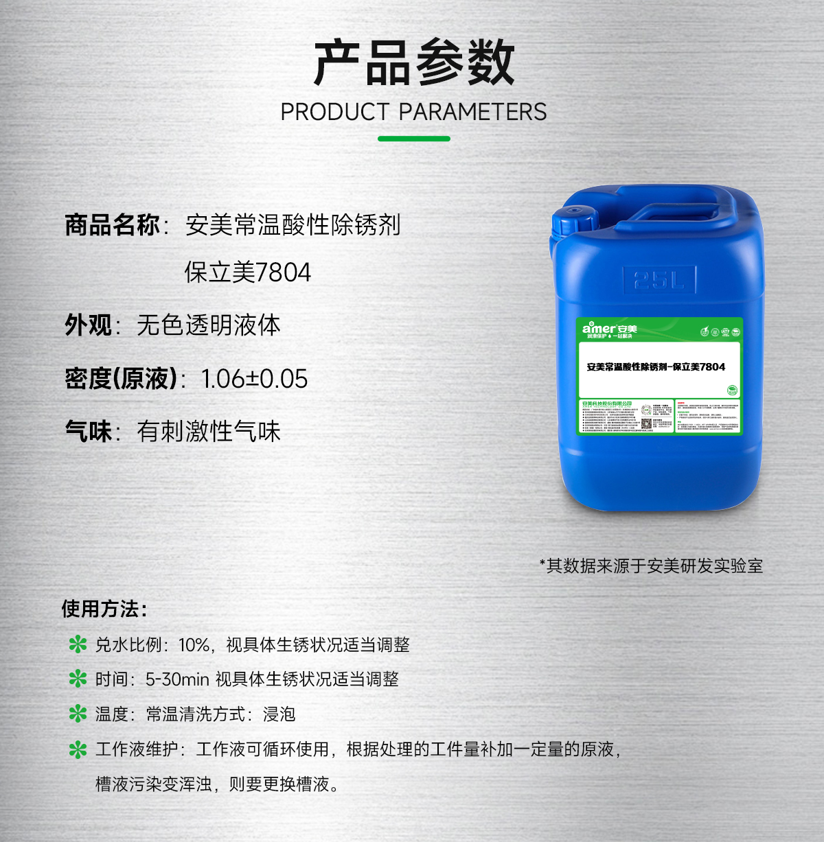 安美常温酸性除锈剂-保立美7804适用于铸铁等易生锈的铁质工件除锈处理。