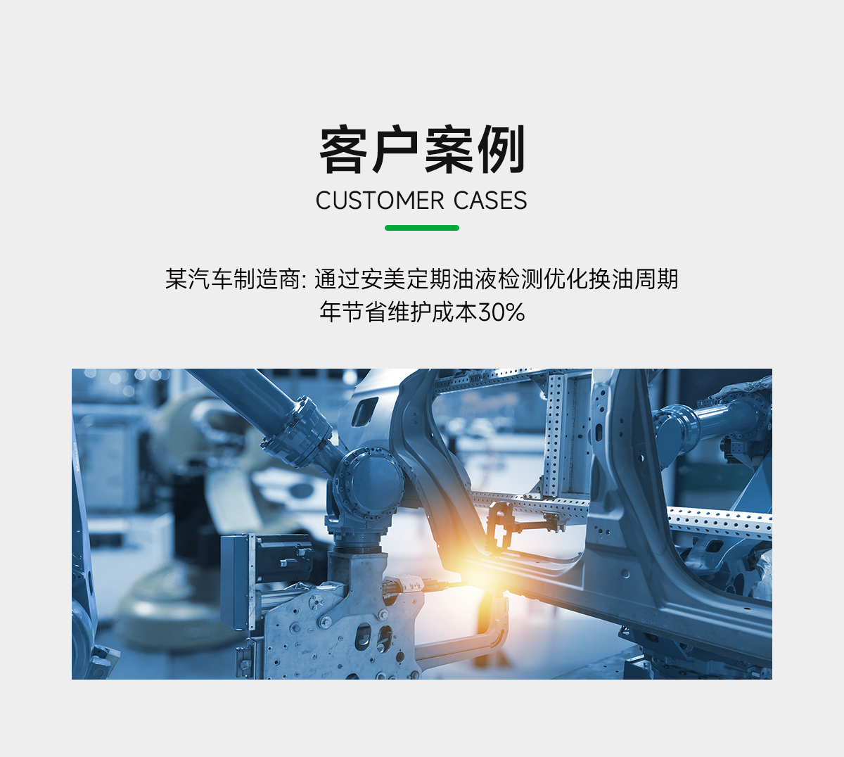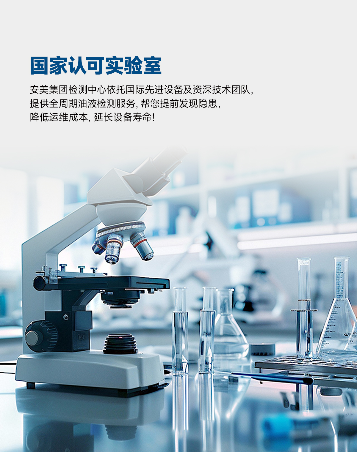 产品应用:安美集团检测检验中心,油液化学品检测专家,为工业设备健康保驾护航。安美拥有两座研发中心,7000多平方米的研发中心及检测实验室,320多台总价值千万的高端检测仪器及台架实验设备,开展400多项油液化学品的检测。安美检测中心通过中国合格评定国家认可委员会的CNAS评审认证(注册号:CNASL14829)。