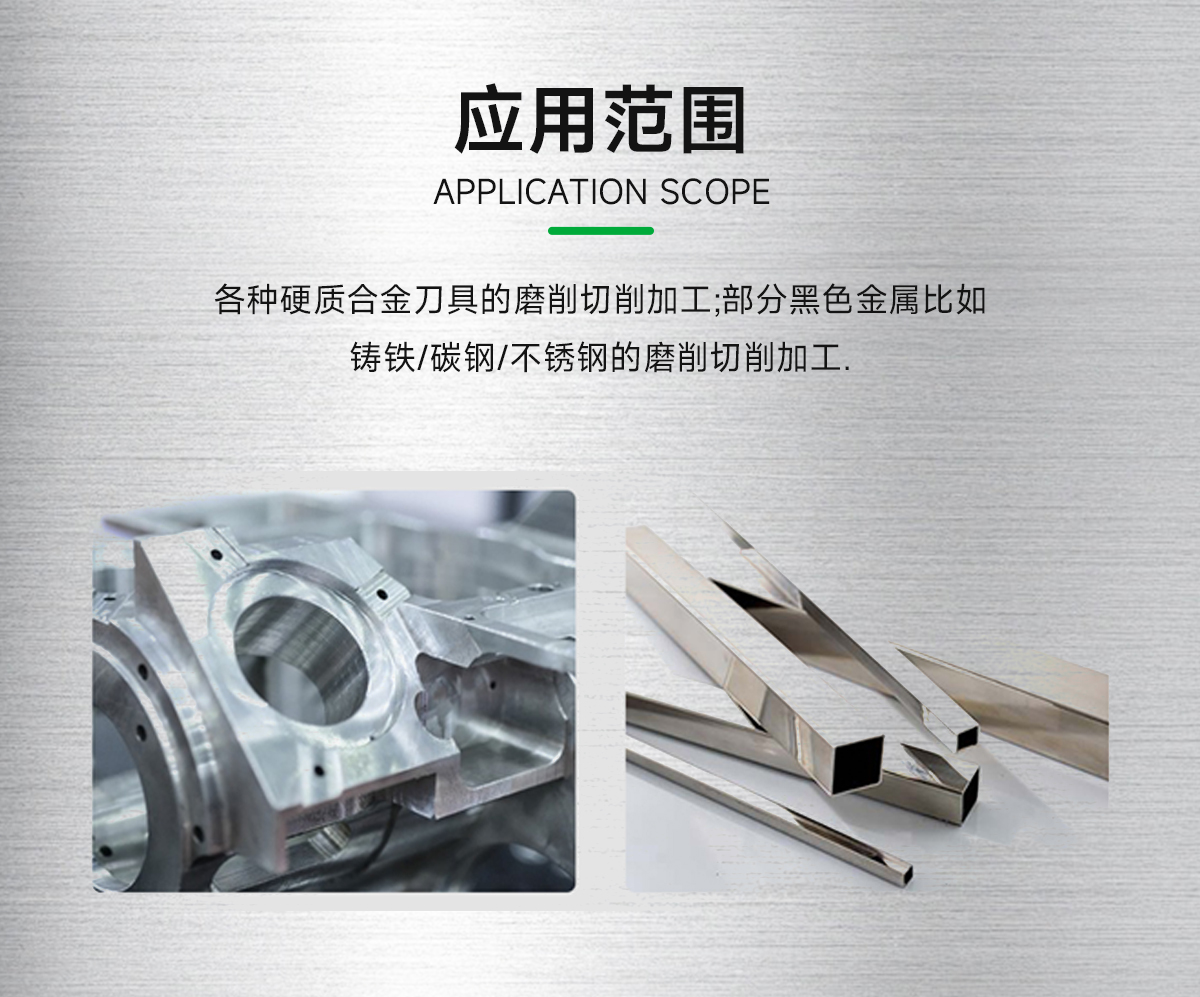 2、适合部分黑色金属比如铸铁/碳钢/不锈钢的磨削切削加工.
