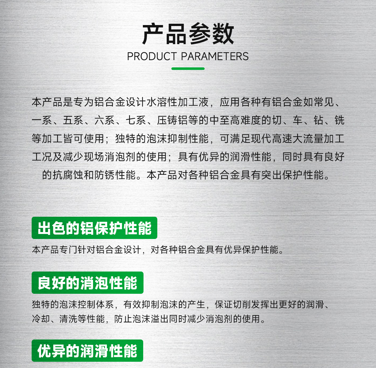 1、出色的铝保护性能:本产品专门针对铝合金设计,对各种铝合金具有优异保护性能。