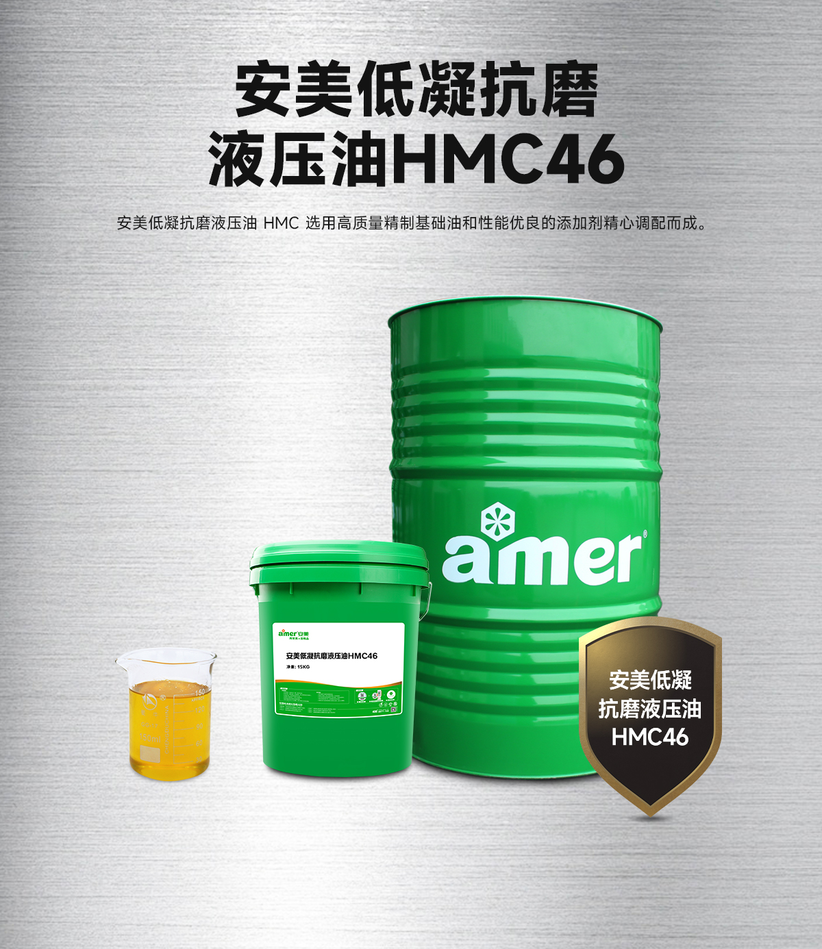 安美低凝抗磨液压油HMC46选用高质量精制基础油和性能优良的添加剂精心调配而成。