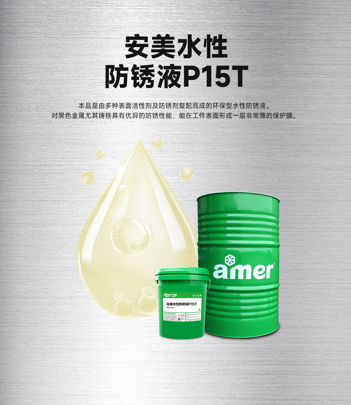 安美水性防锈液P15T是由多种表面活性剂及防锈剂复配而成的环保型水性防锈液。对黑色金属尤其铸铁具有优异的防锈性能,能在工件表面形成一层非常薄的保护膜。