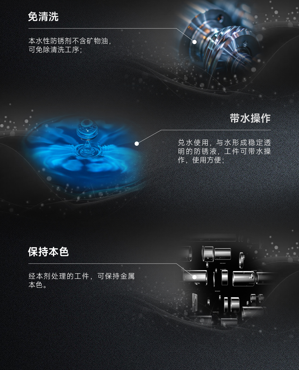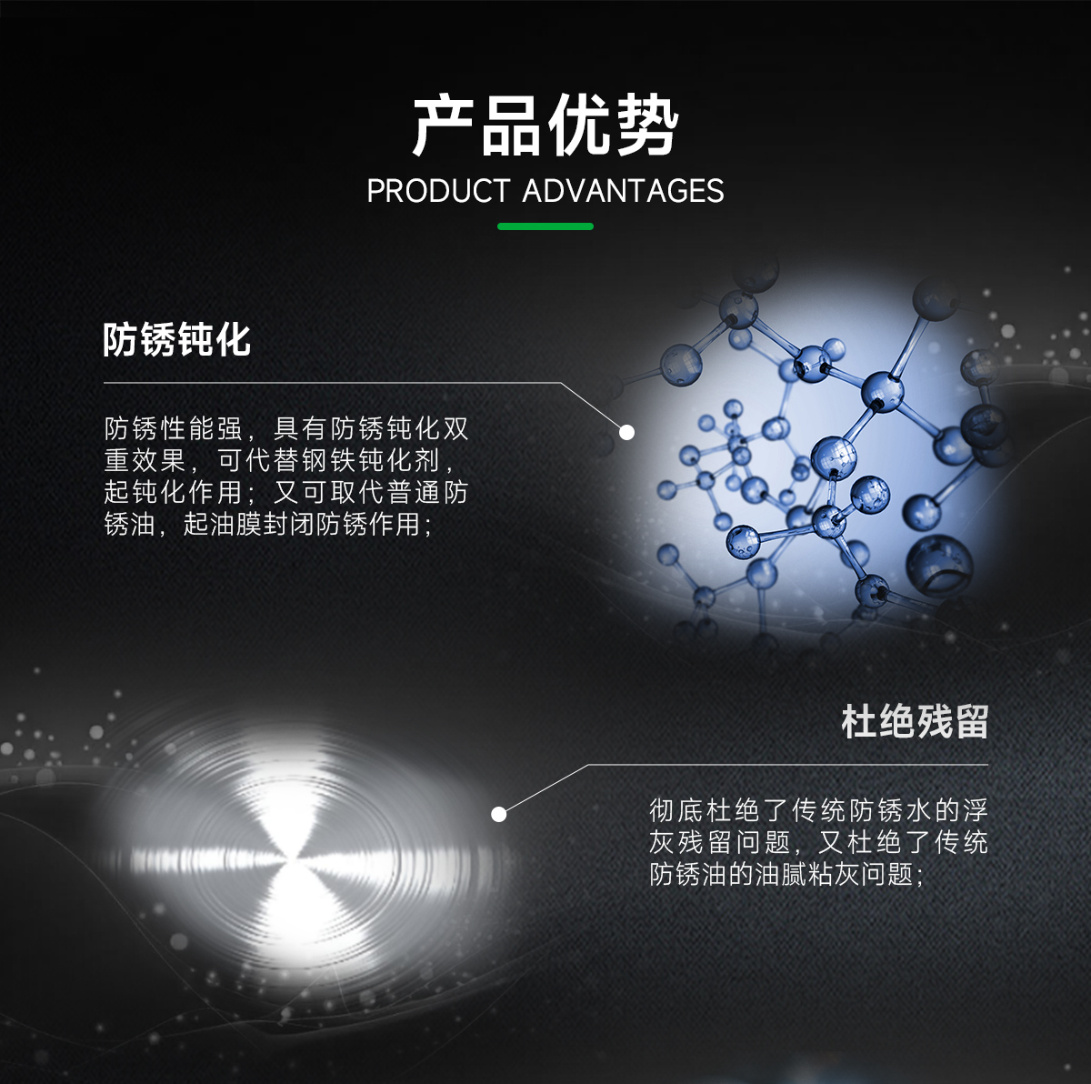 2、彻底杜绝了传统防锈水的浮灰残留问题,又杜绝了传统防锈油的油腻粘灰问题;