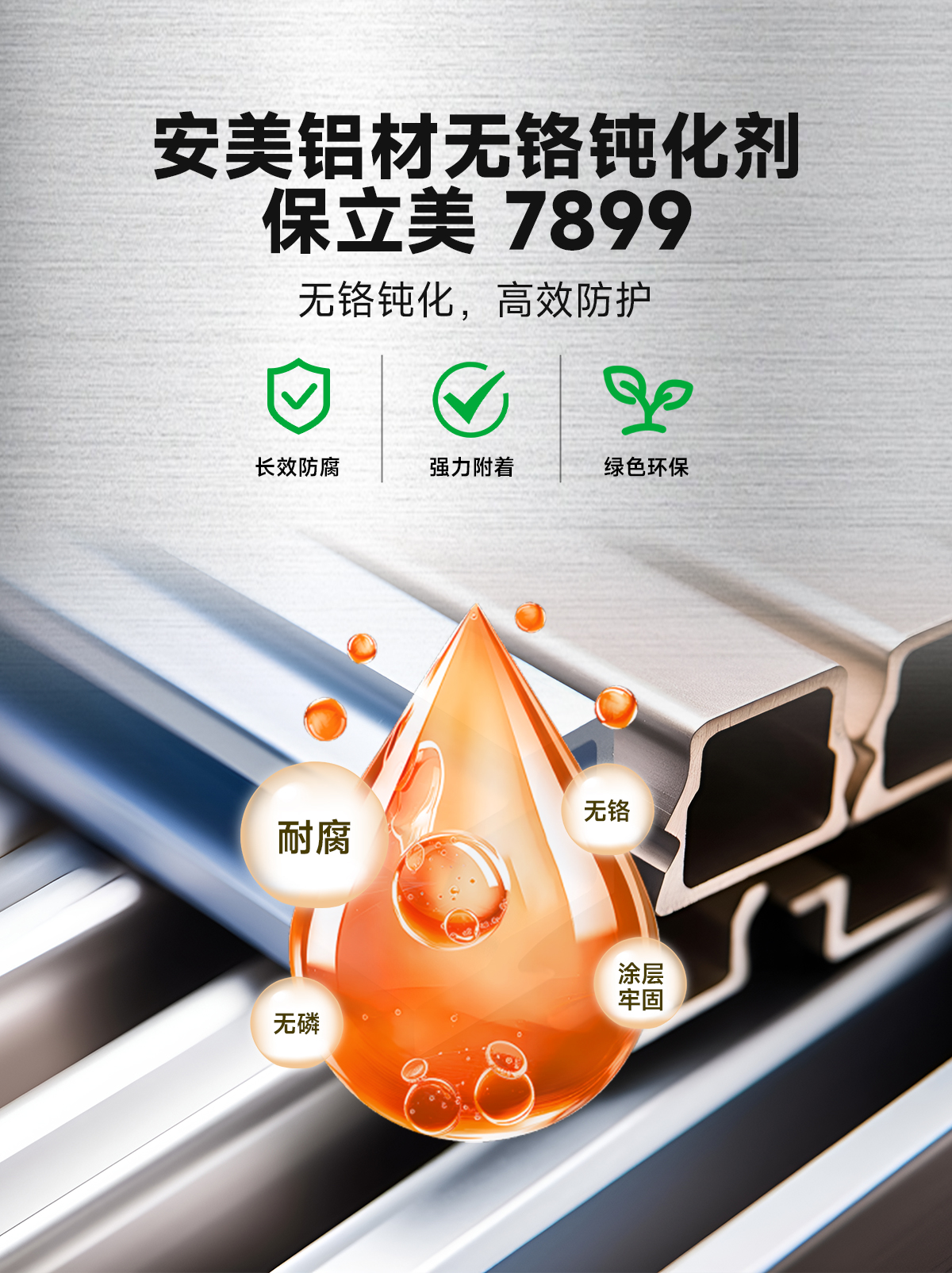 关于安美铝材无铬钝化剂-保立美7899的其它具体指标参数,请移步”安美商城”下载MSDS和TDS报告浏览,或直接钝化剂生产厂家—安美集团客服热线400-7788-123/客服微信18576991625查询索取。