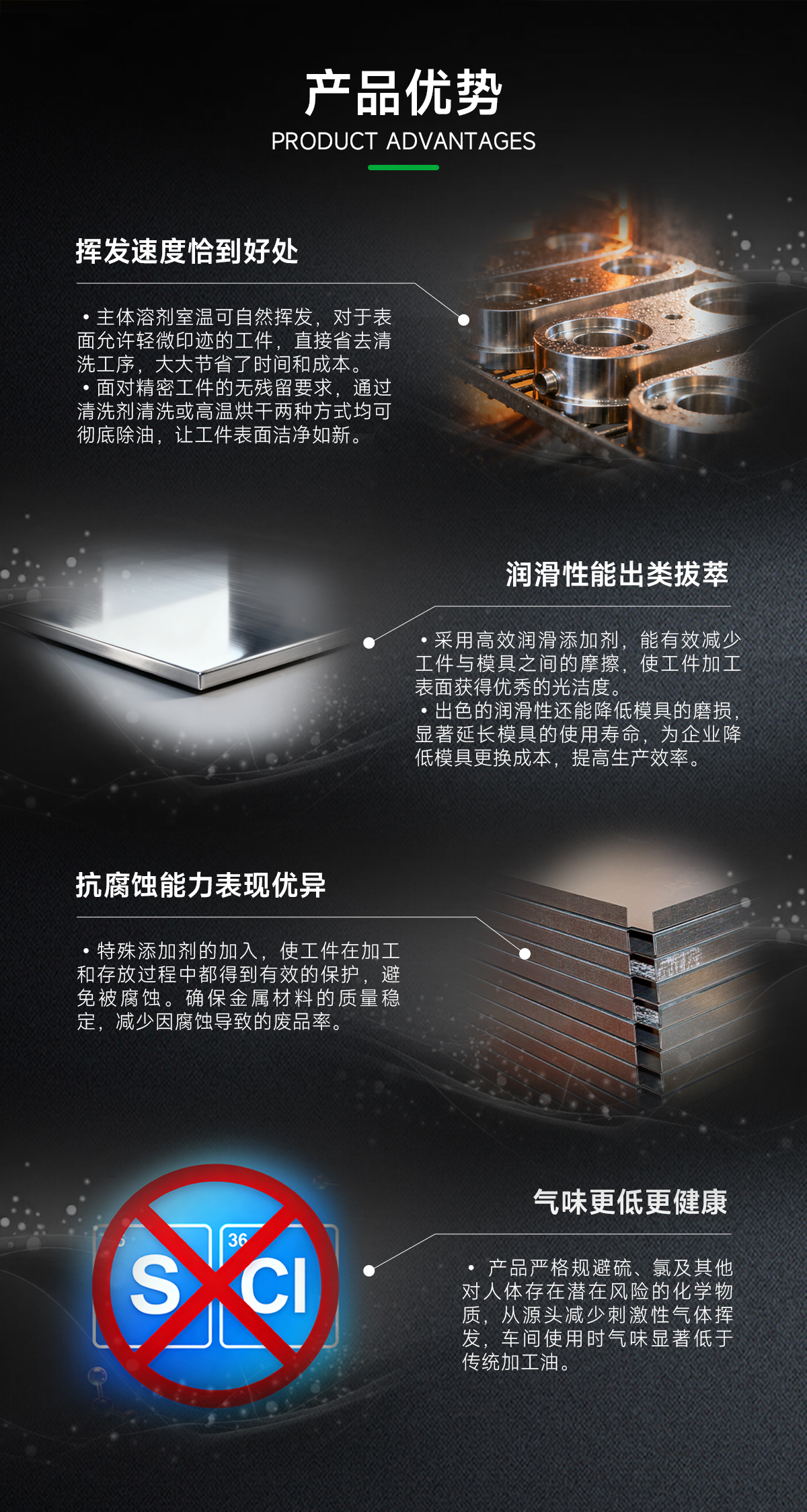 2、优异的润滑性:采用高效润滑添加剂,可令工件加工表面获得极佳的光洁度,有效延长模具的使用寿命;