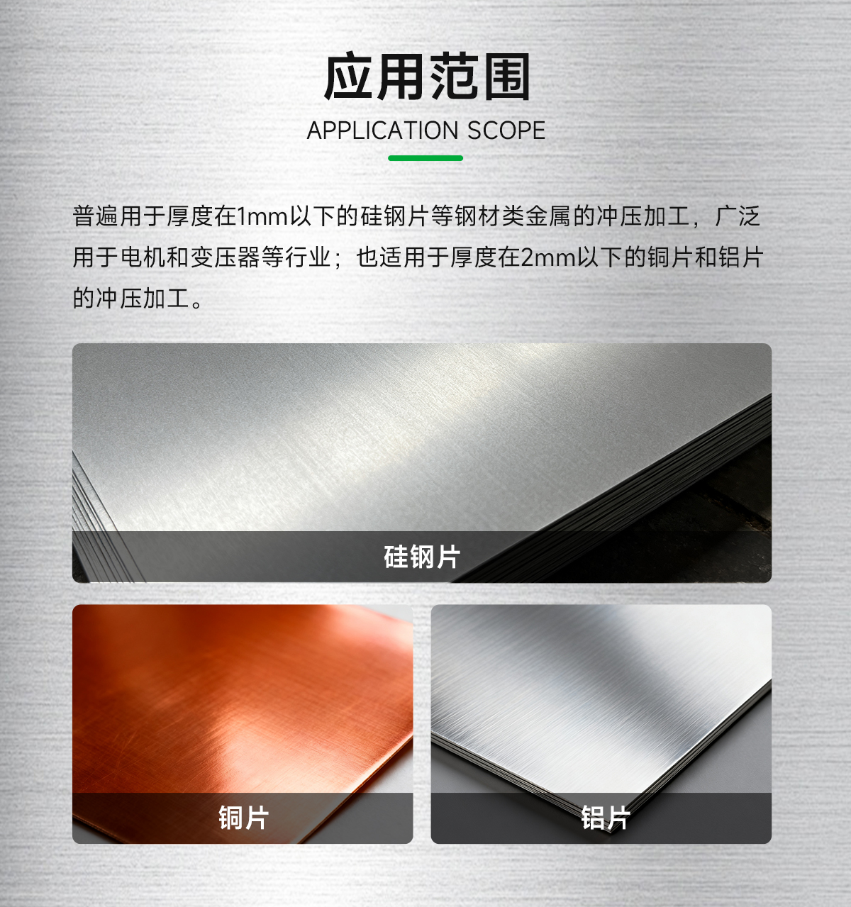 2、也适用于厚度在 2mm 以下的铜片和铝片的冲压加工。