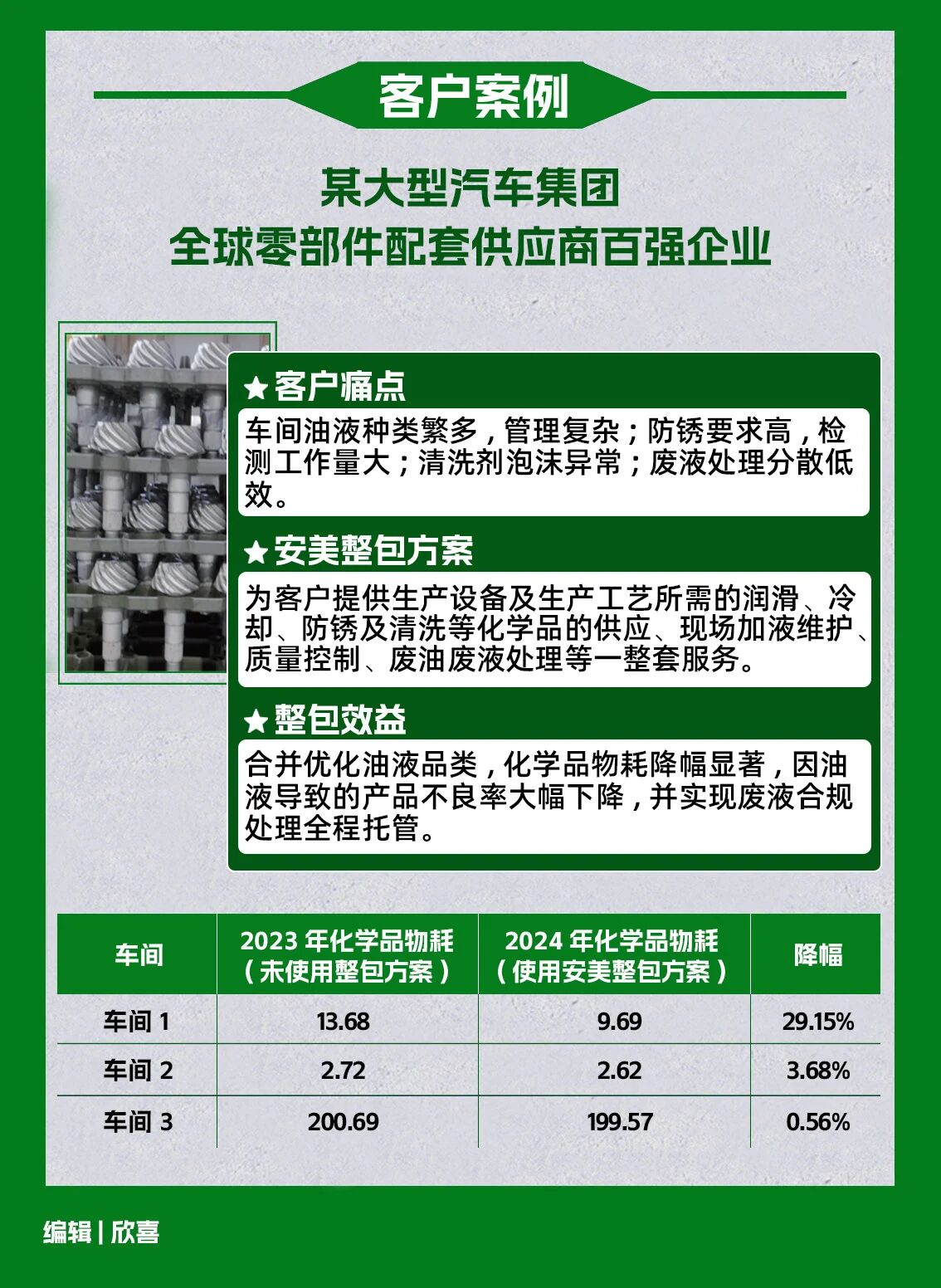 大型车企实测,安美整包服务,24小时响应,单车间物耗降幅达29.15%!